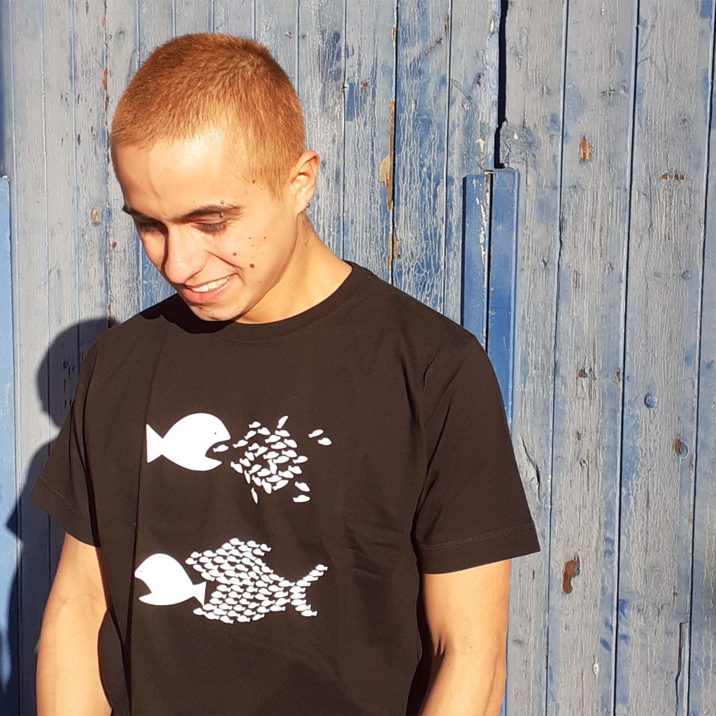 Die Shirts sind von Continental Clothing, einem von der Fair Wear Foundation kontrollierten Hersteller, und von Hand mit wasserbasierten Farben bedruckt.
