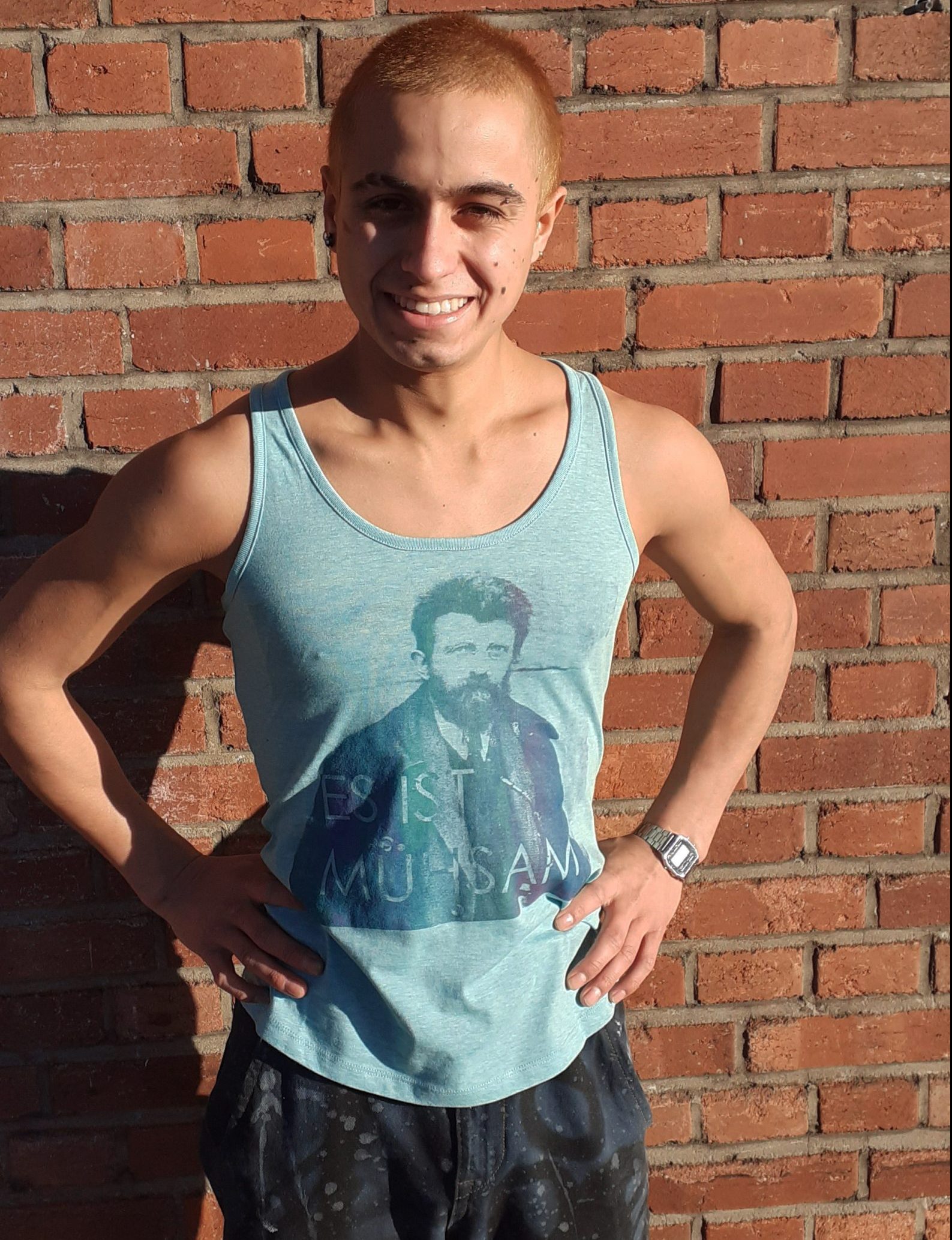 Die Shirts sind von Continental Clothing, die TankTops von StanleyStella, beides von der Fair Wear Foundation kontrollierte Hersteller, und von Hand mit wasserbasierten Farben bedruckt.