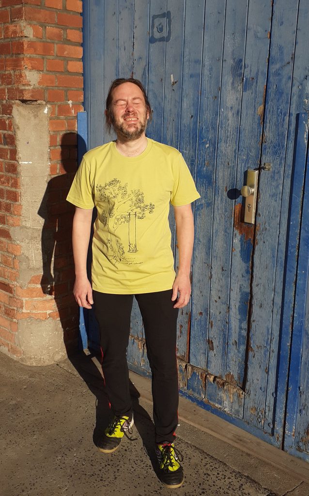 Die Shirts sind von StanleyStella, einem von der Fair Wear Foundation kontrollierten Hersteller, und von Hand mit wasserbasierten Farben bedruckt.