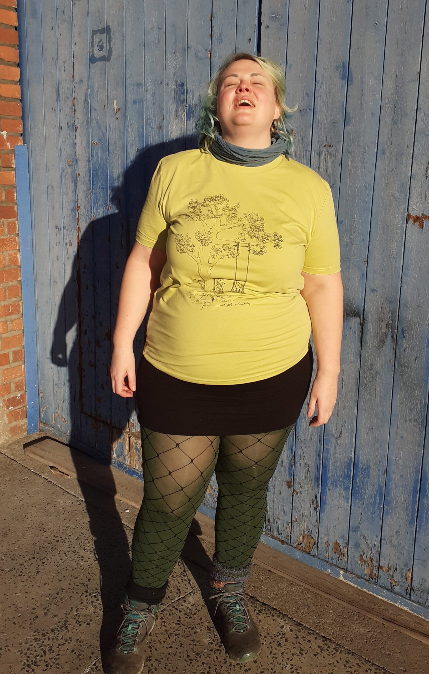 Die Shirts sind von StanleyStella, einem von der Fair Wear Foundation kontrollierten Hersteller, und von Hand mit wasserbasierten Farben bedruckt.