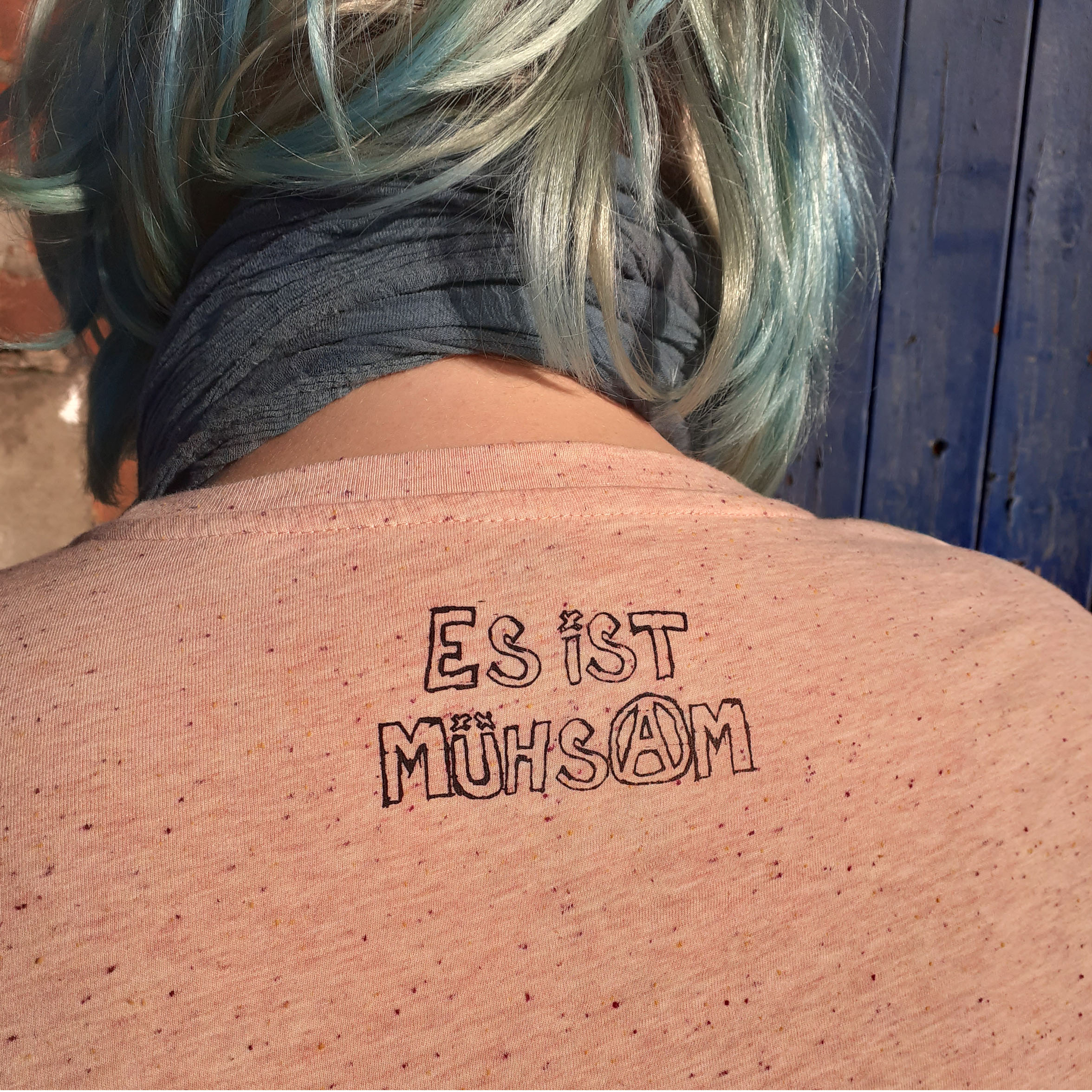 Die Shirts sind von StanleyStella, einem von der Fair Wear Foundation kontrollierten Hersteller, und von Hand mit wasserbasierten Farben bedruckt.