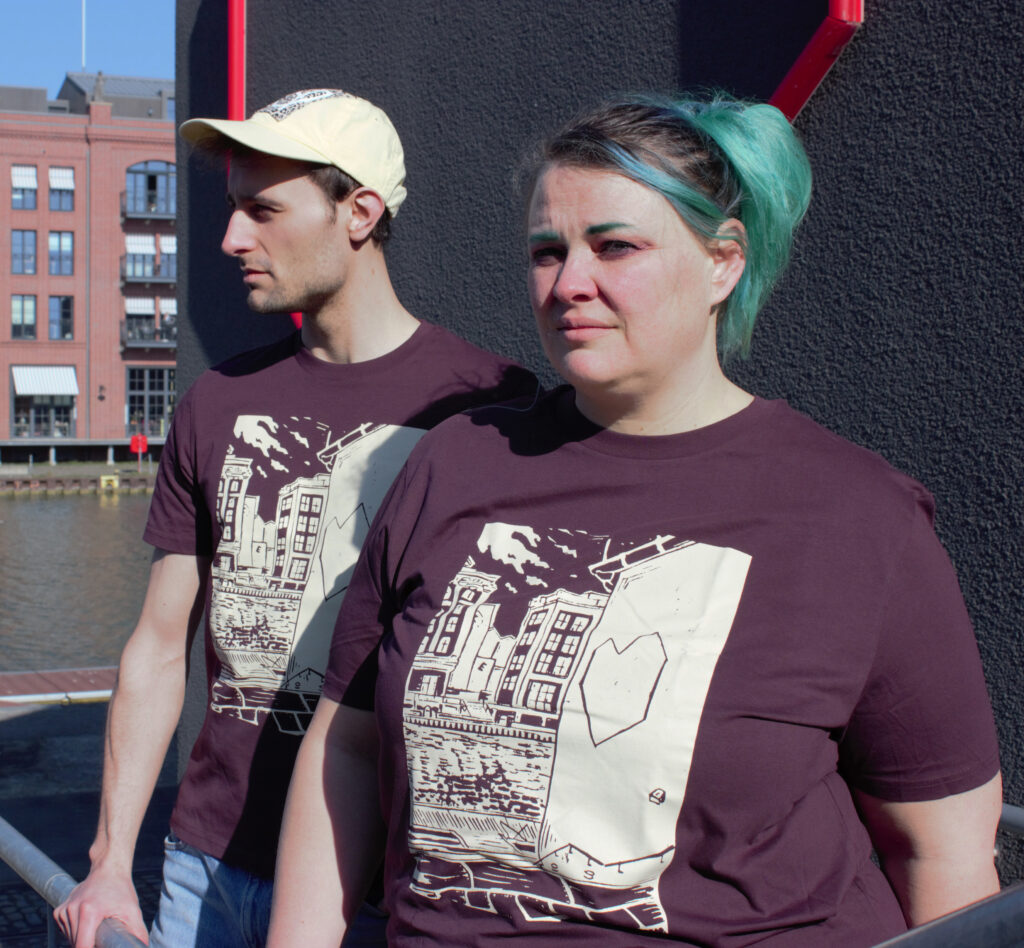 Die Shirts sind von Stella, einem von der Fair Wear Foundation kontrollierten Hersteller, und von Hand mit wasserbasierten Farben bedruckt.