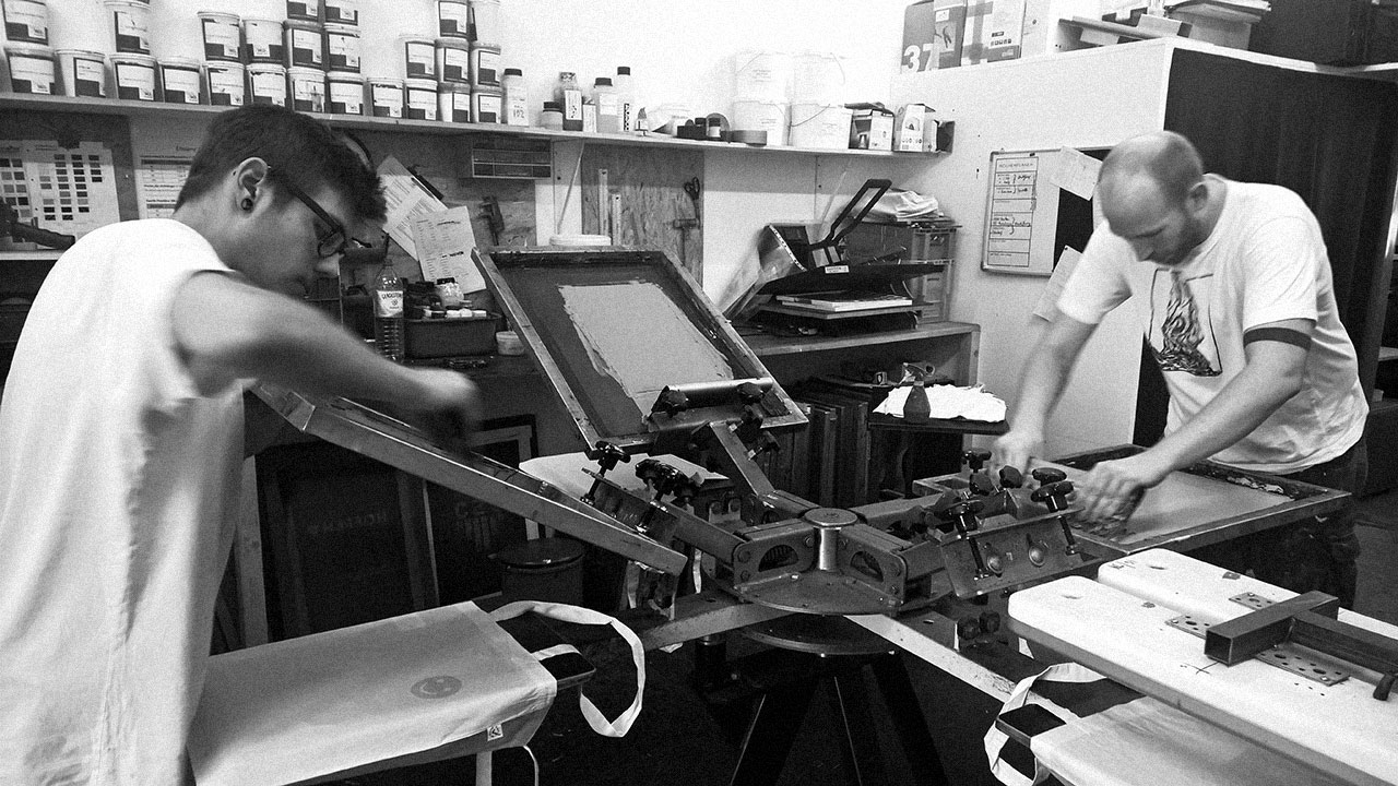 Siebdruck ist ein Druckverfahren, bei dem Farbe durch ein spezielles Sieb gepresst wird. Das Anfertigen der Siebe erfolgt durch Auftragen einer Fotoemulsion auf das Gewebe, das je nach Motiv und Textil variieren kann. Mit einer Schablone wird das zu druckende Motiv geschwärzt und dann belichtet. Außerhalb der geschwärzten Bereiche verhärtet sich die Emulsion und wird wasserfest. Die geschwärzten Bereiche bleiben wasserlöslich und können ausgespült werden. Durch die geöffneten Bereiche im Gewebe kann nun Farbe gepresst werden.